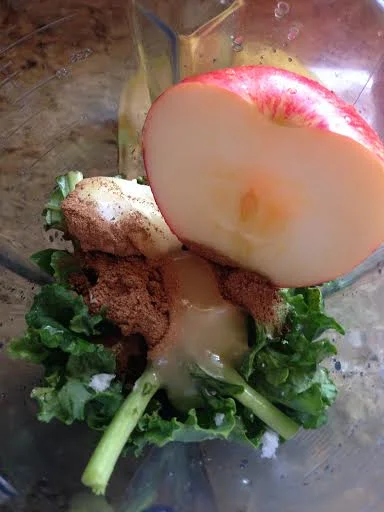 Pour all ingredients into a blender, WITHOUT ice. The more room temperature the ingredients the better because the coconut oil has a tendency to stick to the side of the blender if the smoothie is too cold.