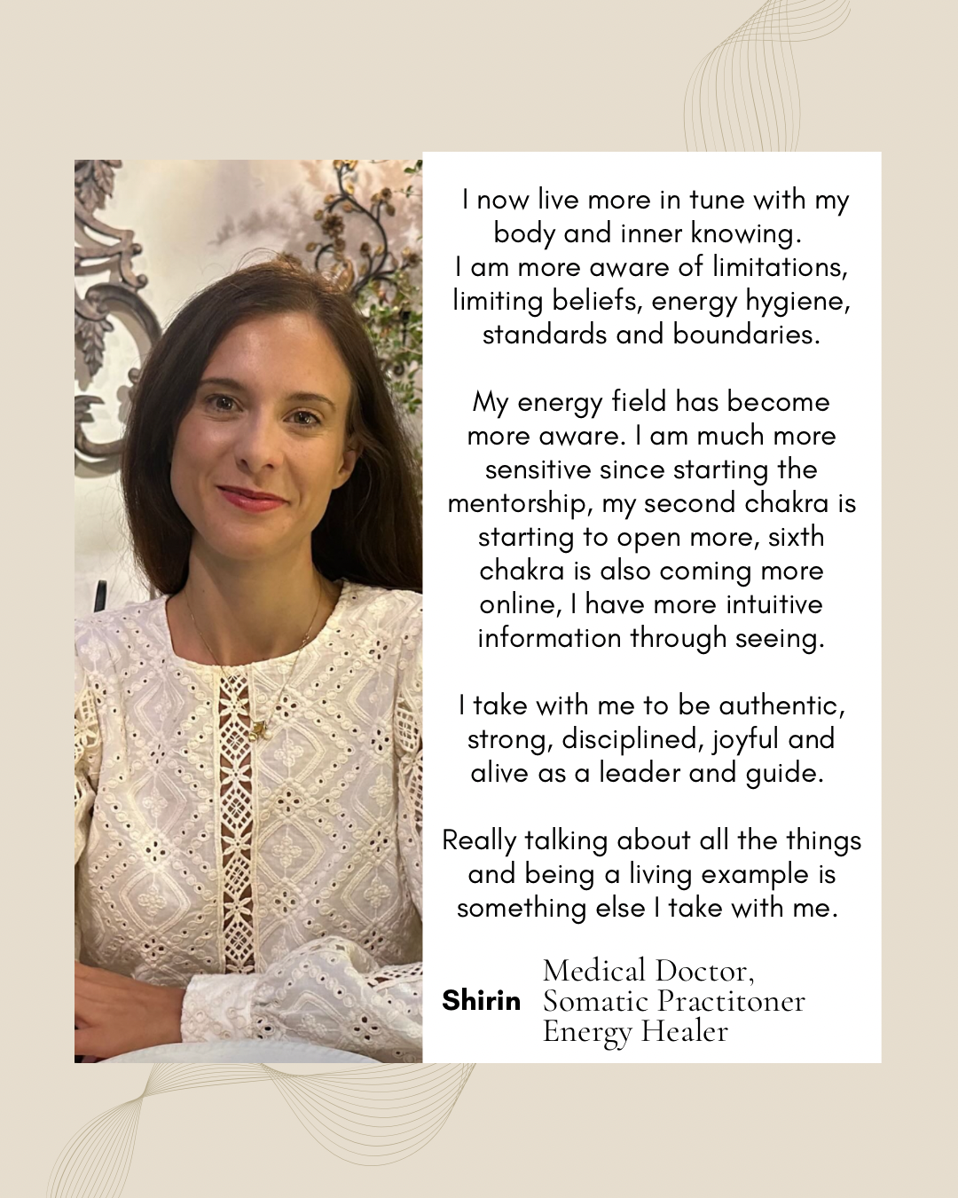 For those of you already working as healers, mentors, coaches (regardless of modalities used) - this program will be a refinement, addition and wonderful complement to your work. You will feel even more empowered and confident in your work and you will feel safer sharing your work with more people, which will unlock your next level.